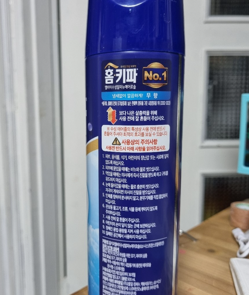 저는 취침 2시간 전에 미리 방에 뿌려놓고 문을 닫아두었다가 환기 후 아이들과 함께 안심하고 방에 들어가요. 냄새는 거의 없고, 모기와 파리는 싹 잡혀 있어서 정말 만족스러웠어요.