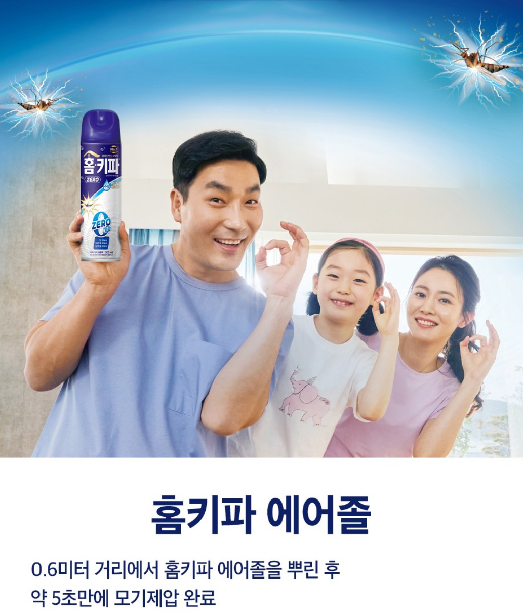 향이 강한 살충제를 쓰면 아이들 호흡기에 자극이 갈까 걱정되잖아요? 홈키파는 무향 제품이라 냄새 걱정이 덜하고, 기름 대신 물 성분을 사용한 수성 에어졸이라 뿌린 뒤에도 끈적이거나 미끌거리지 않아서 좋아요!